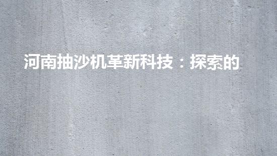 河南抽沙機革新科技:探索的未來?
